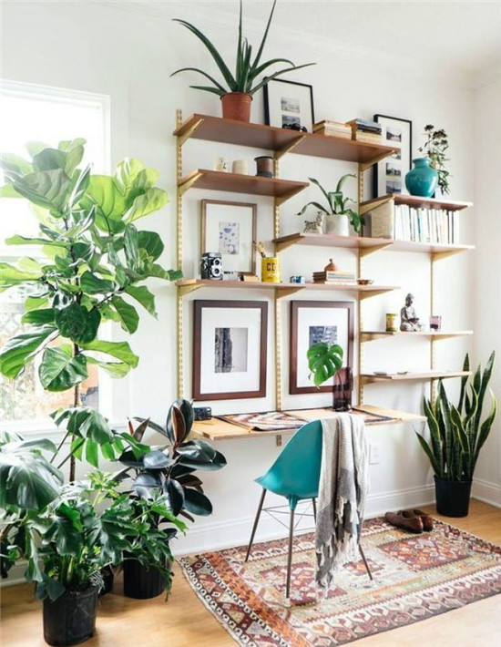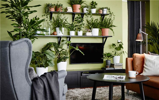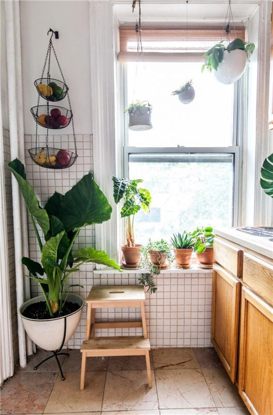 靠窗布置綠化,能使植物接受更多的日照,并形成室內綠色景觀。可以作成花槽或低臺上置小型盆栽等方式。應根據不同部位,選好相應的植物品色,但室內綠化通常總是利用室內剩余空間,或不影響交通的墻邊、角隅,并利用懸、吊、壁龕、壁架等方式充分利用空間,盡量少占室內使用面積。同時,某些攀援、藤蘿等植物又宜于垂懸以充分展現其風姿。因此,在進行家居設計布置綠化時,應從平面和垂直兩方面進行考慮,使之形成立體的綠色環境。