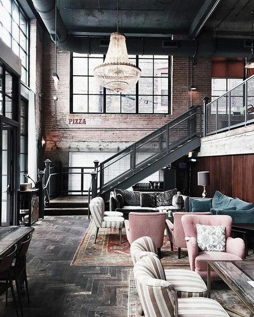 ? ? ? ??工業風興起的源頭是經過改造的舊工廠,裸露的磚墻和混凝土墻是其中一個辨識度很高的空間特色。