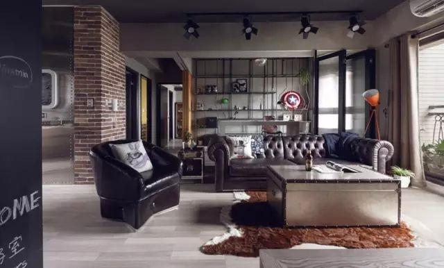 ? ? ? ??沙發的選擇可以不用太刻板,不一定非得皮沙發或者具體到蜜蠟色皮沙發,現在工業風有了許多個性化的改良,棉麻或者絨面的沙發氣場也不輸。