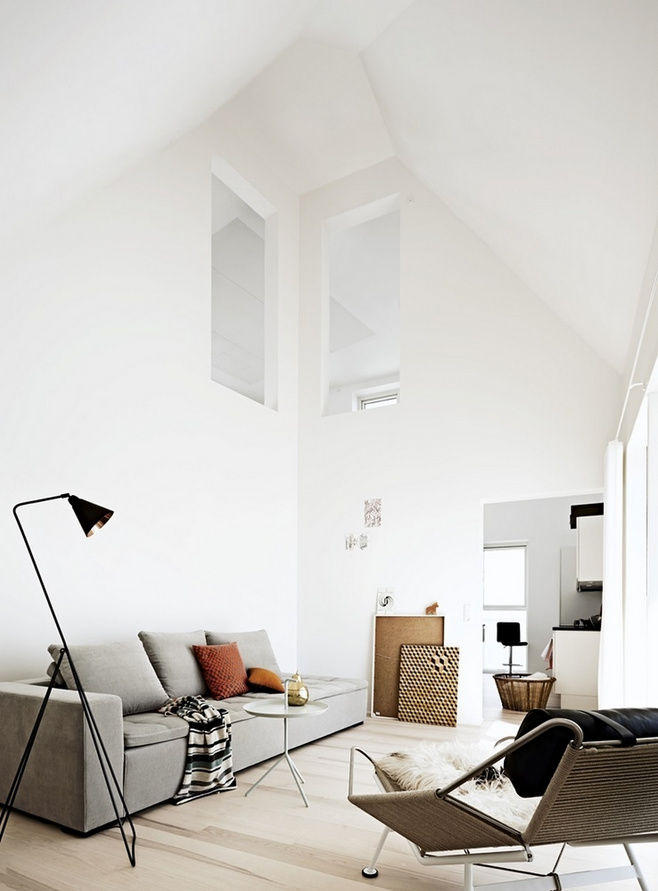? ? ? ?▲純白色系與空間搭配融為一體,亞麻質感和針織花紋將沙發區分開來,以體現視覺上的變化。