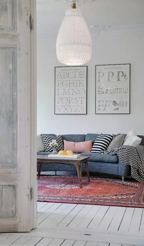 ? ? ? ?▲古舊感的水泥地鉆和沙發,恰到好處的印花抱枕和墻上的裝飾畫相得益彰,成為整個空間的點睛之筆。