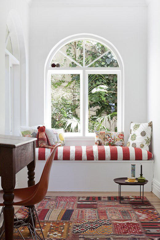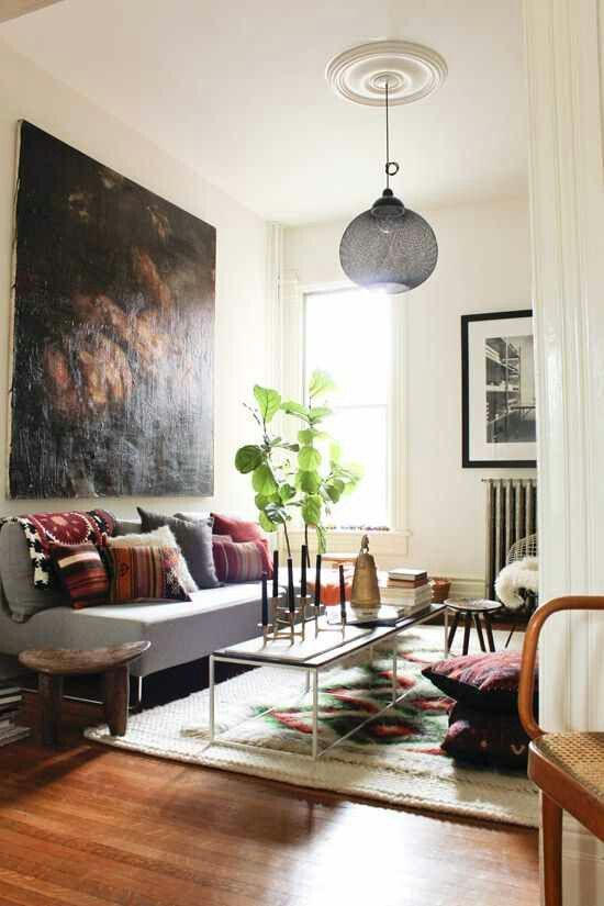 ? ? ? ▲葉子紋路和多種圖案的抱枕,與波西米亞風格的地毯交相輝映,田園風鋪面而來。