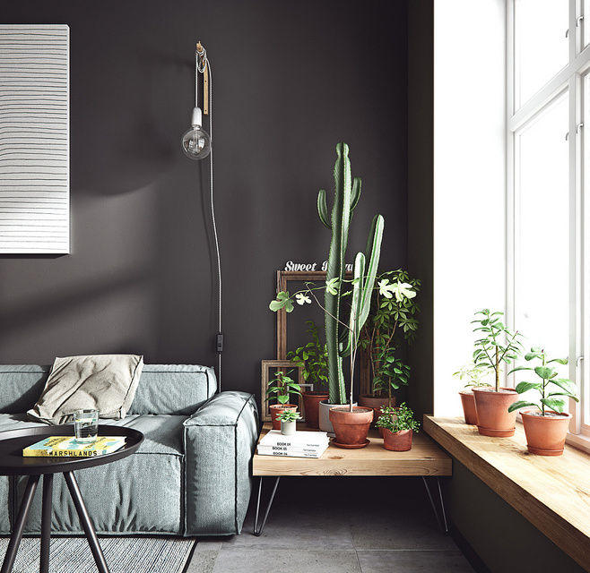 ? ? ? ?▲深色系的沙發輔以暖色調的抱枕,從而點亮了整個沙發區,成為視覺的焦點,精致而充滿設計感的小物提升了整個空間的格調。