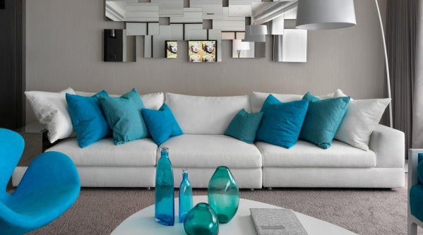 ? ? ? ? “遠大近小”,是指越靠近沙發中部,擺放的抱枕應越小,視覺上給人的感覺會更舒適。