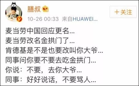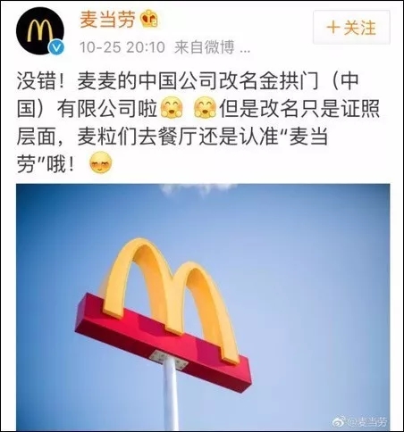 昨天,麥當勞中國公司改名金拱門了,消息一出刷爆朋友圈。