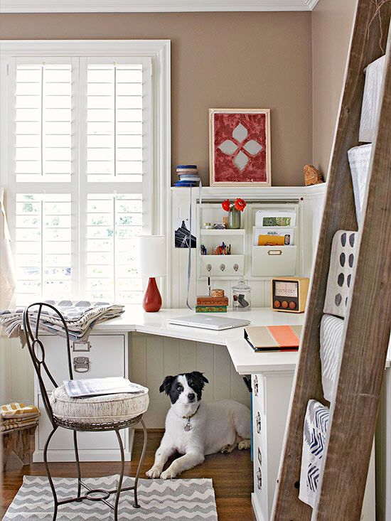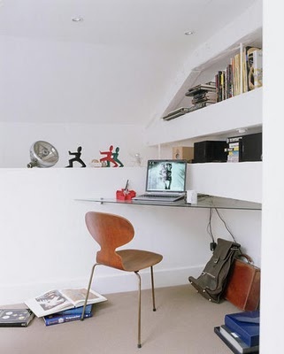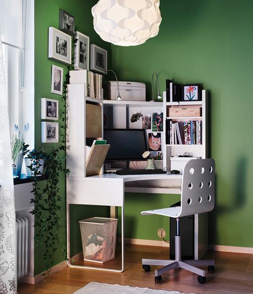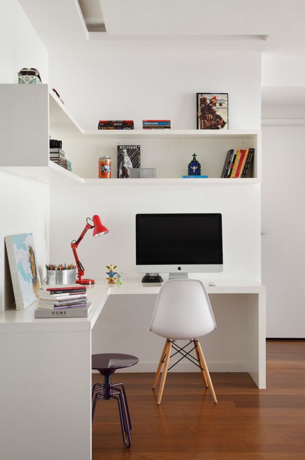 根據使用需求劃分為兩個不同的功能區,靠窗光線好的那邊可用作閱讀及寫作區,另一邊可放置電腦,作為電腦桌。有點小心思的話,可以將面對的那面白墻裝飾起來,讓這處空間更有意思。
