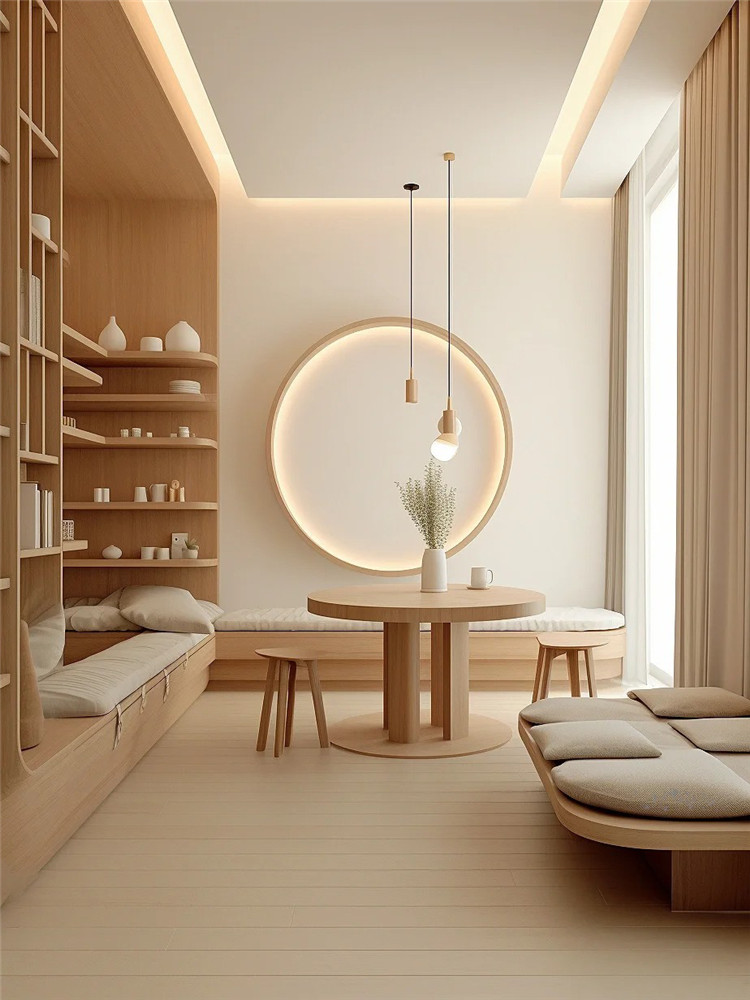 如室內空間充足,可于轉角處定制地臺,配上柔軟的坐墊與小桌,這里就是一個充滿詩意的茶室。