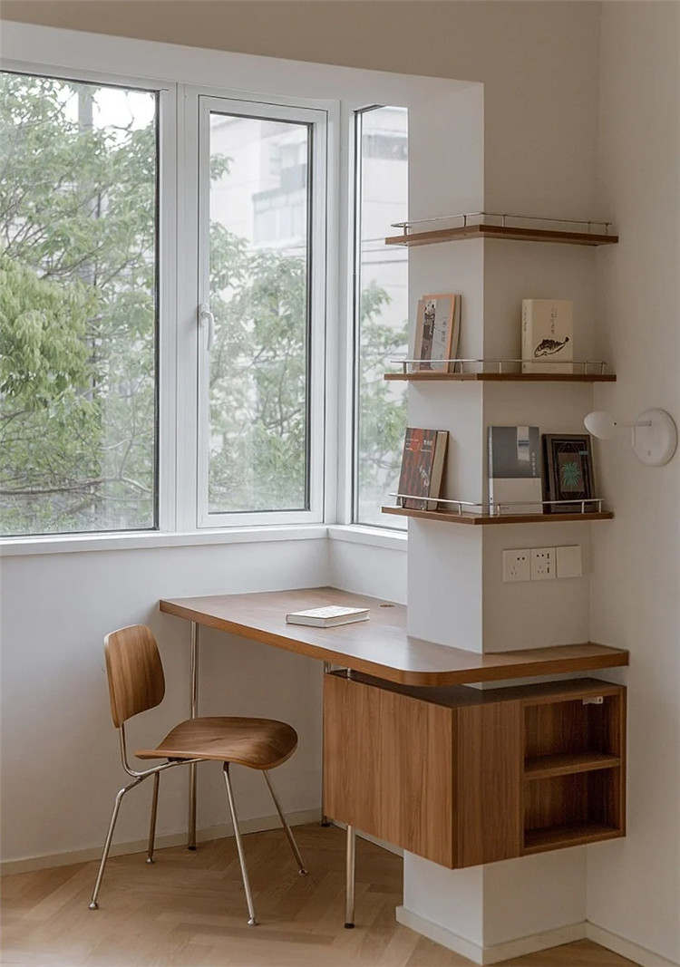 轉角擱板也可以和書桌相結合,這樣就是一個實用的家庭辦公區,無論是看書還是做手工,都是比較方便的。
