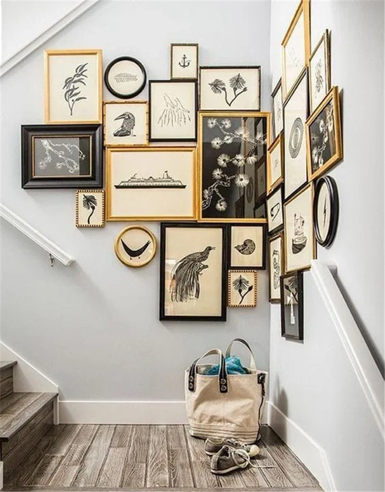 轉角作為視覺的交叉點,也可以通過懸掛一些照片,形成整體感,拉長視覺效果,也為家的氛圍增加了文藝范兒。