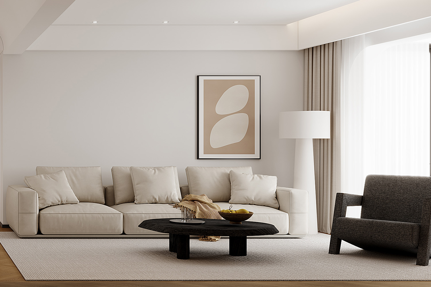 案例簡介:本案例的主人公對于簡約而又品質的舒適生活情有獨鐘,因此在進行室內裝飾的時候她希望設計師不用使用過于艷麗的色彩以及各種網紅化的元素,以簡簡單單的舒適感為主即可。設計師根據業主的需求審美以及生活習慣,為業主挑選了素雅感較為強烈的簡約風作為主裝修基調,舍棄大量華麗而又繁瑣的元素,利用材料原始的質感來營造一種返璞歸真的自然舒適感。