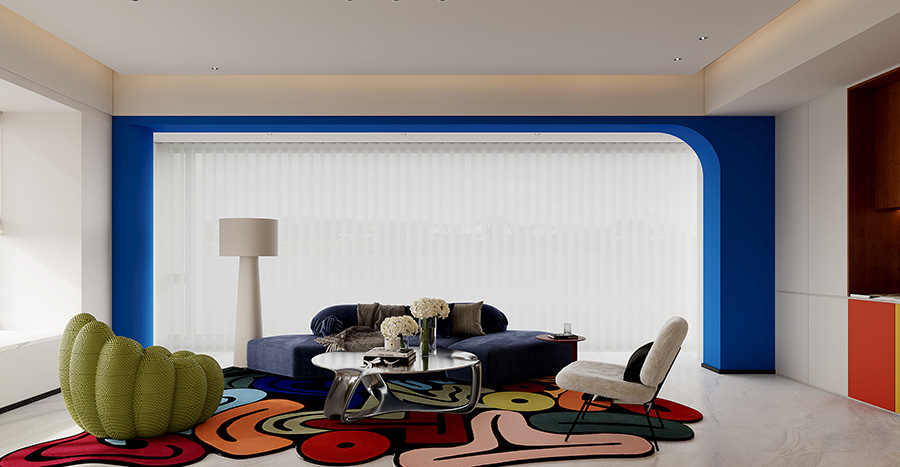 百瑞景這套三居室的住宅占地面積約為90㎡,戶型結構緊湊且空間浪費少,整體需進行改動的區域并不多,且能夠滿足業主的日常使用需求,因此設計師保留了原有的空間結構。為提升空間的利用率,提高業主生活品質,設計師將狹長的客廳中切割出一小塊區域打造成迷你衣帽間,在不破壞會客區域功能使用的同時,有效提升了整個空間的合理規劃性。