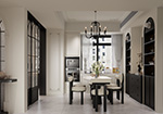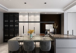 由于房屋大多數情況下是由退休老人一個人居住,因此沒有在就餐區域使用較多的面積,而是在滿足使用需求的前提下追求一種沉穩大氣感,借助酒柜、大理石餐桌來營造一種渾厚大氣的貴族氣息。