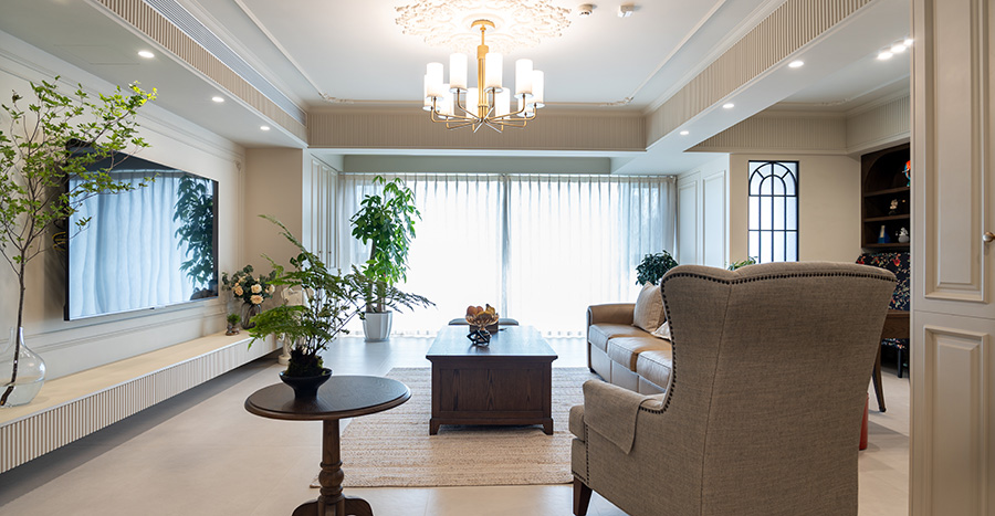 喧囂的城市,如何構建一所心靈棲息所成為了大多數人所思考追求的,而對于退休老人而言更是如此。退休老人多追求簡約、舒適而又帶有沉穩韻味的空間,因此設計師在進行房屋設計時優先從老年人的審美及需求角度出發,細節處追求人性化元素,以讓房屋能夠更好的為居住者服務。