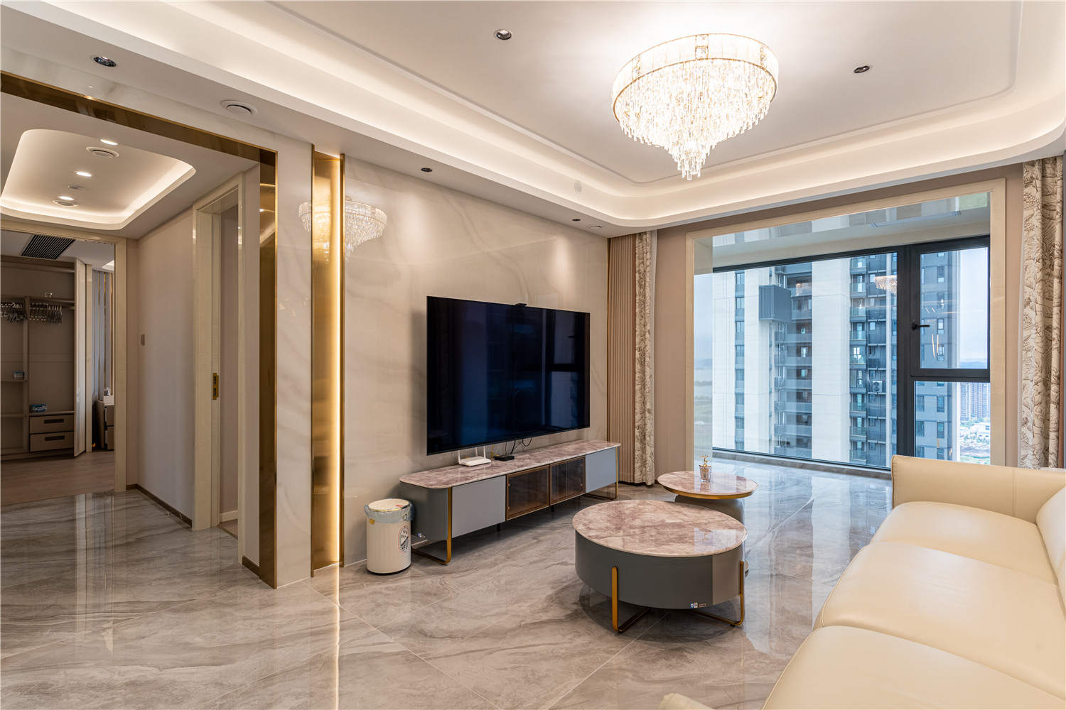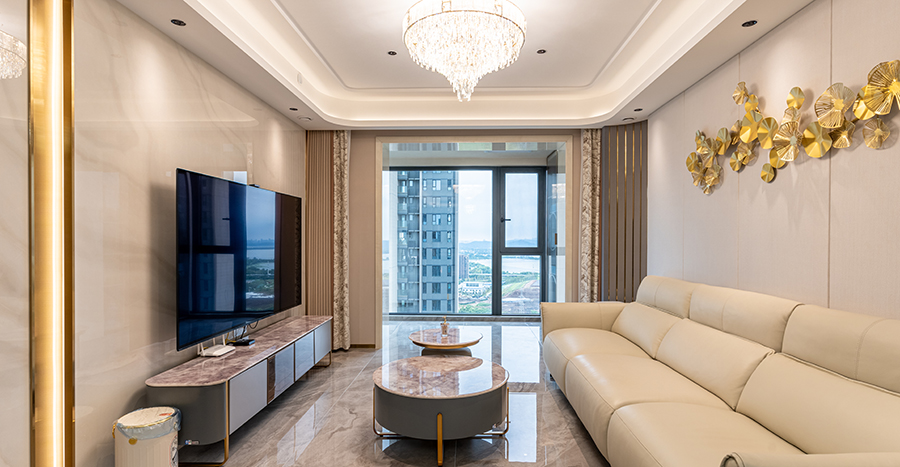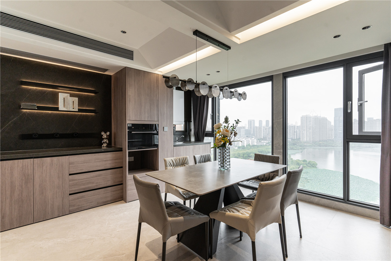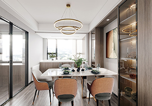 這是一套位于東湖天下的180㎡四居室房屋,空間面積做大且戶型結構相對沒有太多瑕疵,因此在設計時無需在戶型空間的改造上做過多“糾纏”,以業主及其家人的使用需求為主即可。以不同材質的地面材料為空間隔斷,能夠讓整個房屋更顯緊湊合理。為讓各個功能空間更具銜接感與一直性,不同的功能空間使用了相似的元素或者色彩進行裝飾,以從視覺上保障整個房屋空間的和諧美。