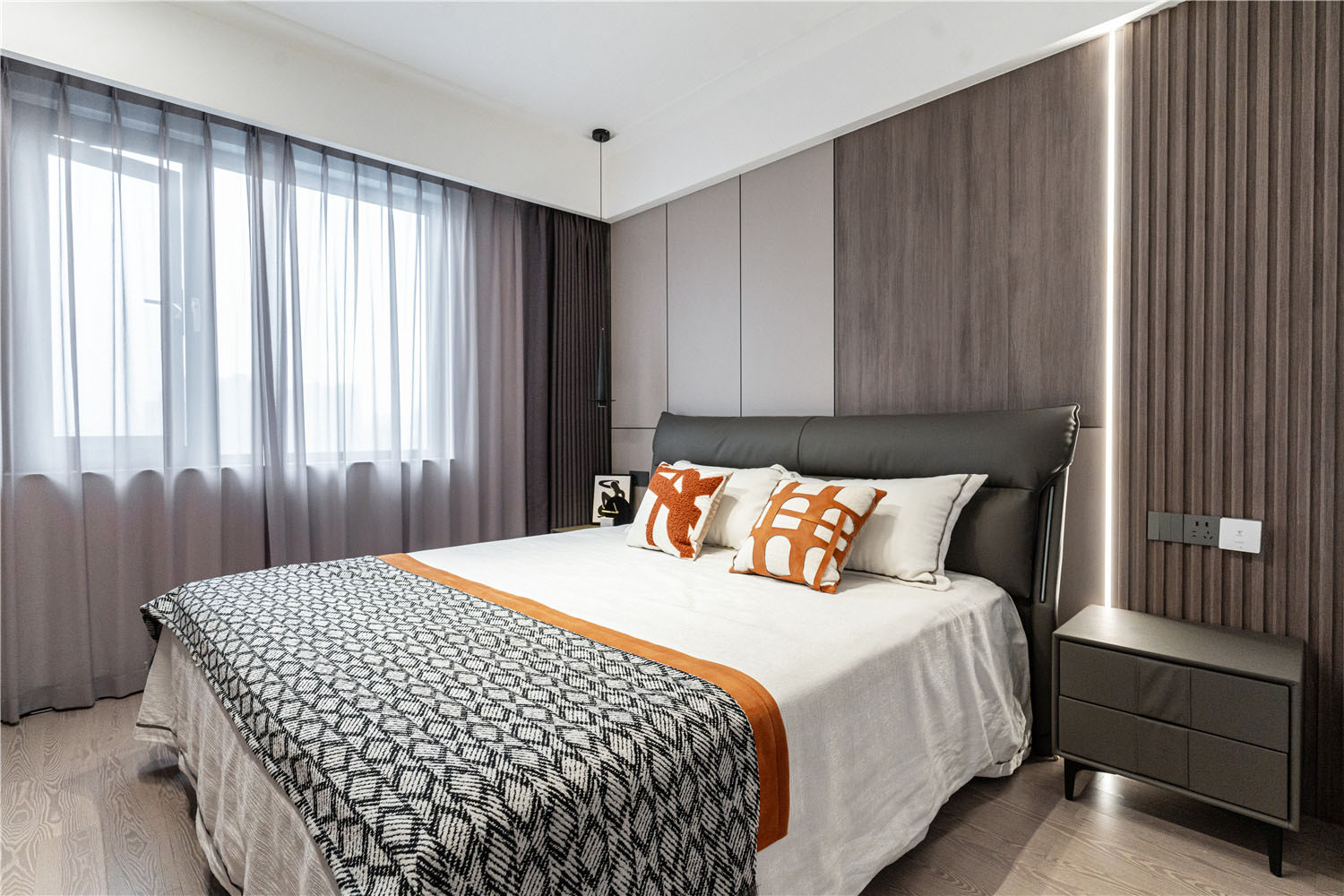 臥室空間邂逅浪漫紫色,時尚高雅的軟包設計不僅增添了隔音效果,也散發出優雅古典的歐式氣息,電視機的融入凸顯出主人對高品質生活的追求,傳遞出舒適智能的歐式生活品質。