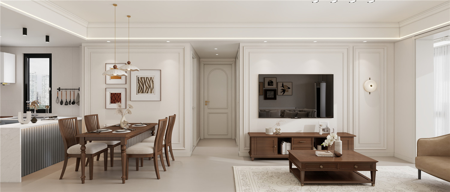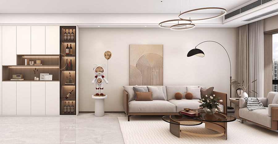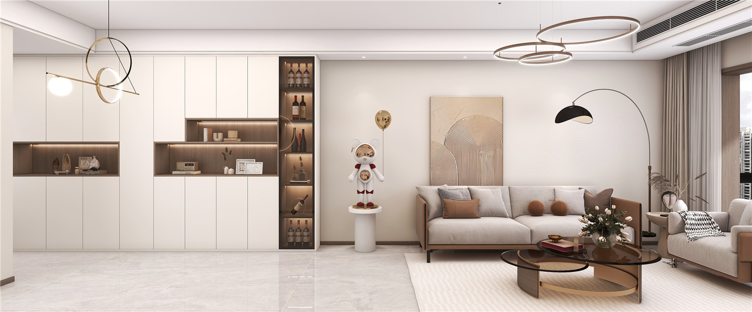 案例簡介:本案例的家庭為幸福的五口之家,除了業主夫妻二人外還有業主的父母與孩子,因此業主希望設計師能夠根據不同家庭成員的需求對空間進行合理的規劃與設計,以提升起居幸福感。而在與所有家庭成員進行一定交流溝通后,設計師折中選擇了認可度比較高的現代輕奢風作為空間主裝修基調,而色彩的選擇上則以簡潔素雅為主,這樣相對比較耐看且易于打掃。