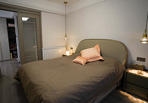 大面積的素色碰撞上暖色系燈具,一種朦朧柔和的溫馨質感油然而生。