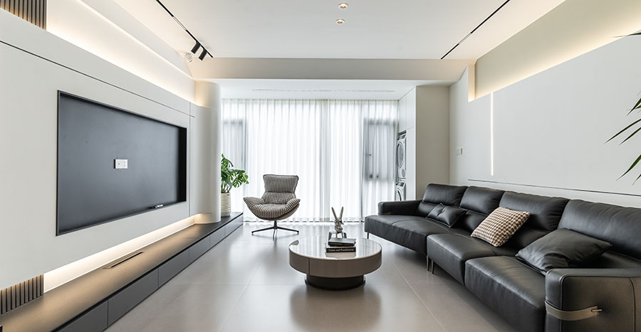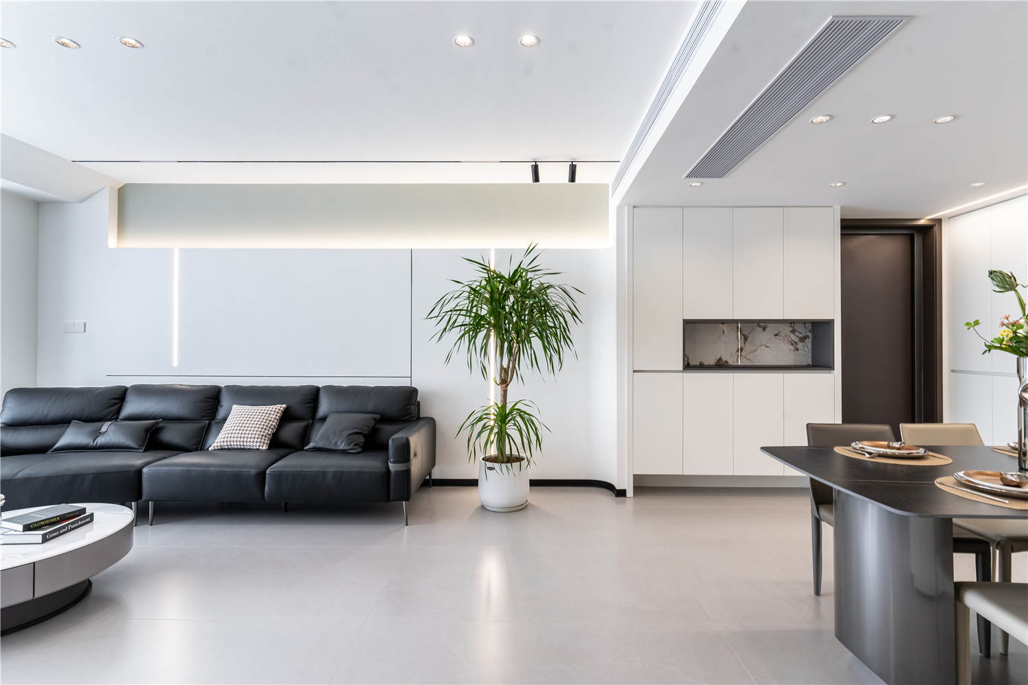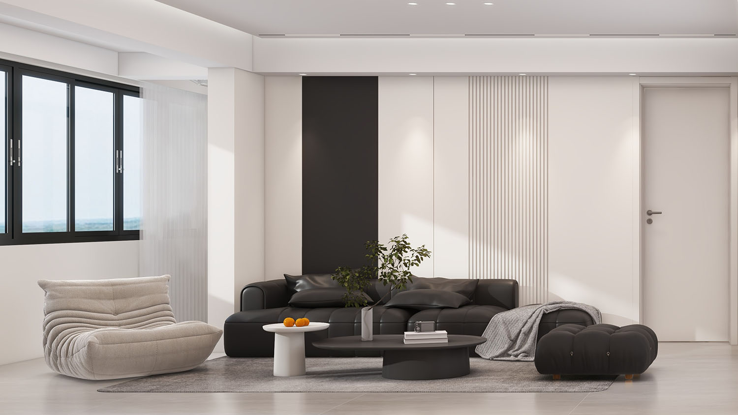在黑白灰的主色調下,客廳彌漫著一股純粹而高雅的氣息,這種色調憑借其強大的包容性和可塑性,勾勒出了一幅和諧而宜居的生活畫卷。