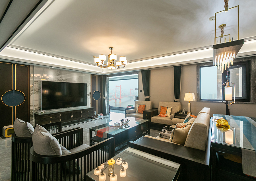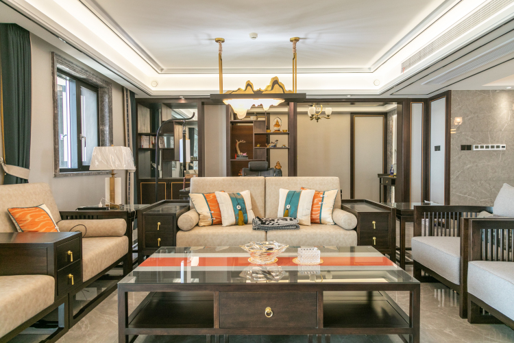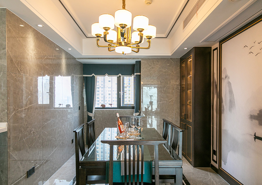 案例簡介:本案例的業(yè)主作為一個教師,對于傳統(tǒng)的中國文化有著濃厚的興趣,因此在與設計師交流的時候強烈的表達了自己對中式元素的喜愛。因此在本案例設計過程中,設計師為業(yè)主選用了經典的新中式風,同時借助各類質感元素的雜糅使用,演繹了一個復古而又不失摩登時尚氛圍的輕奢雅苑。簡約的線條、傳統(tǒng)的中式復古元素,讓家居空間呈現出豐富的層次與藝術的格調。