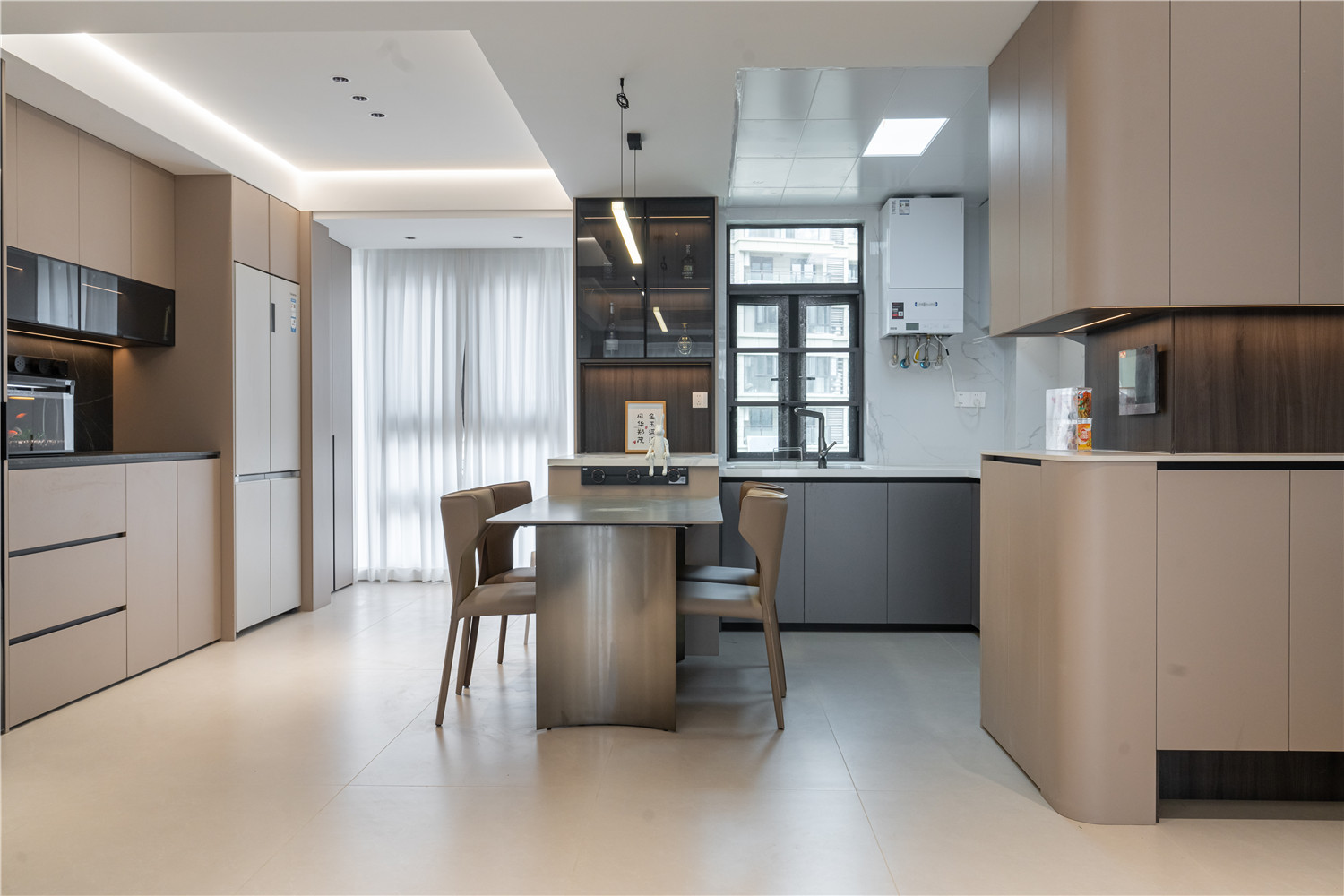 這座位于臥龍墨水湖邊的140㎡三居室住宅的結構相對比較方正規整,結構缺陷比較小,最大的空間問題在于客廳區域與就餐區域的面積不夠大,因此設計師在進行規劃設計的時候僅借助視覺的分隔來起到空間劃分的作用,以從視覺上起到放大整個家居空間的作用。而玄關處則是借用簡單的裝飾設計,來緩解空間面積不大所帶來的壓抑感。