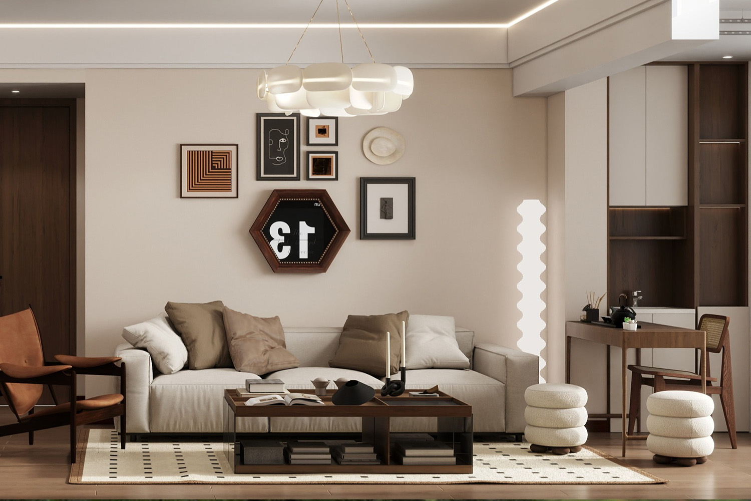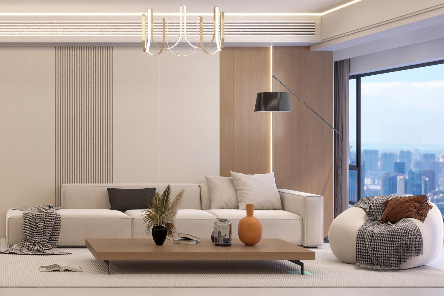 案例簡介:在家裝設計中有一種設計手法叫做留白,這指的是借助大面積的空白營造空間的韻味感,給人以無限遐想,這是簡約風中最為常見的設計手法,能夠讓人在家居空間中更好的放空自己。而本案例的業主不喜歡設計繁瑣的家居空間,希望通過最為簡潔的元素打造出干凈舒適的休憩空間,因此最終設計師為業主敲定了帶有留白設計的簡約風軟裝,通過合理的點綴搭配大面積留白來營造一種獨特的優雅高級感。