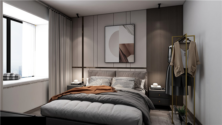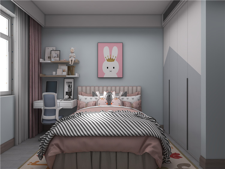 淡綠色墻面搭配上白色衣柜,整體強調清新簡潔感。而床頭柜處則背帶按照成一個迷你辦公區,有效提升空間利用率。