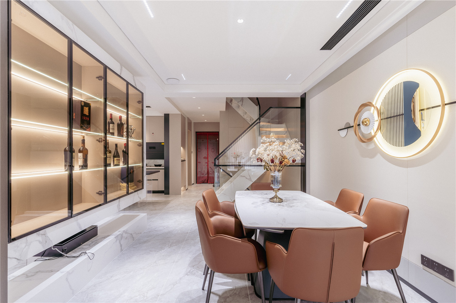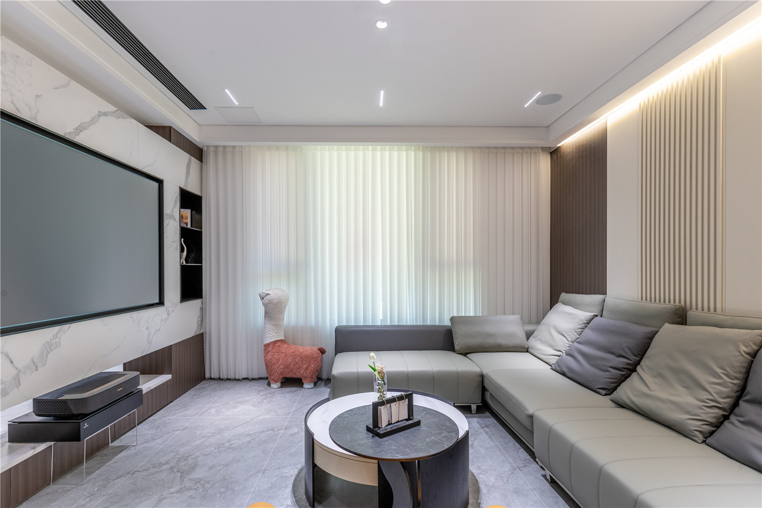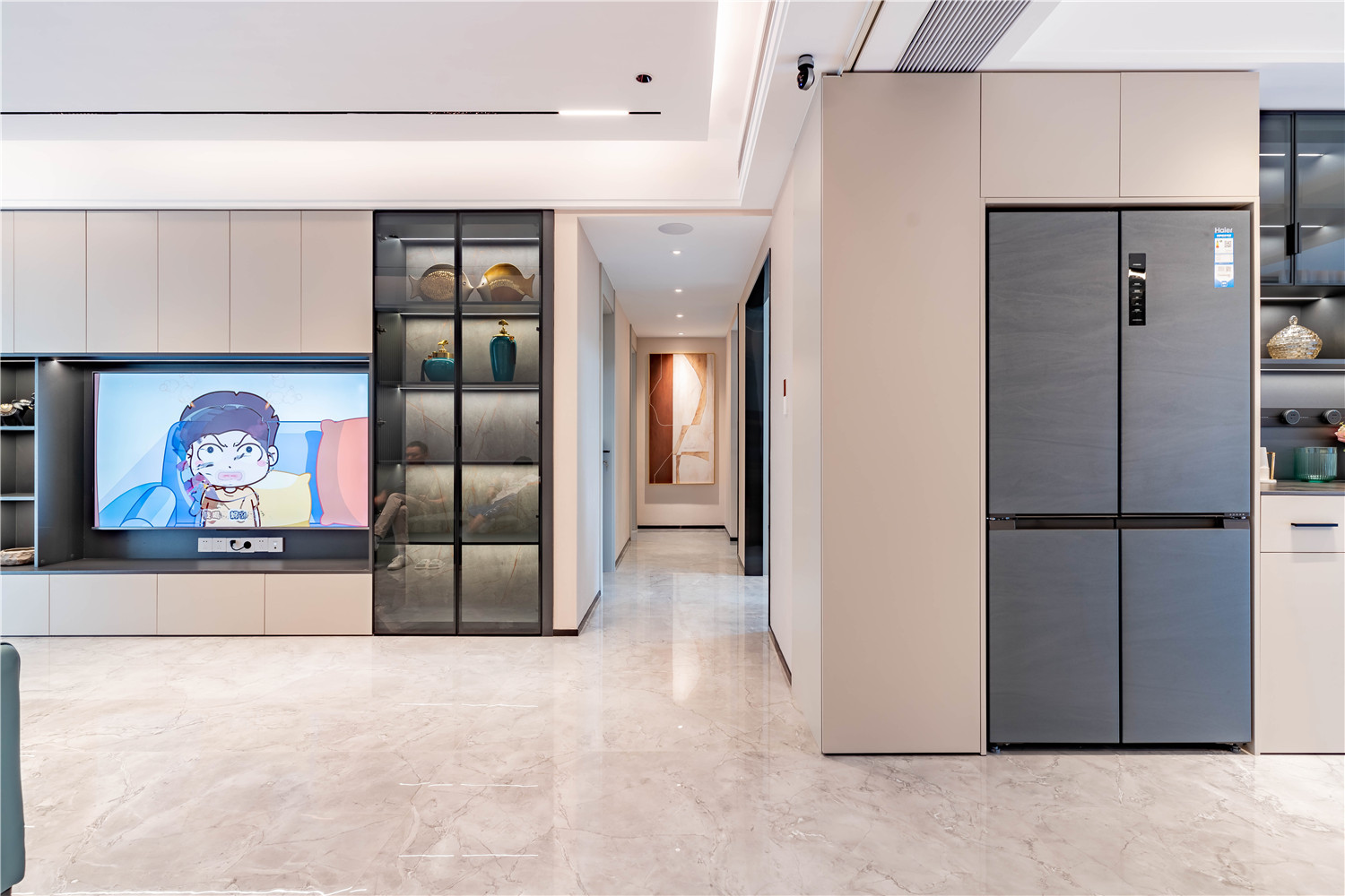 大理石電視背景墻既可以起到裝飾點綴客廳的作用,又將客廳與外部空間進行軟隔斷,有效提升空間的界限感。