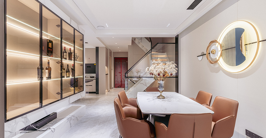 案例簡介:由于本案例自帶庭院,因此設計師在室內融入了多種綠植設計,從外觀上保障庭院與室內設計的一致性,同時通過對稱性原則提升空間整合感。而裝修風格的選擇上,設計師則選用了相對比較耐看上檔次的現代輕奢風,并借助高端材料的質感來提升整個別墅空間的檔次感與品質感。