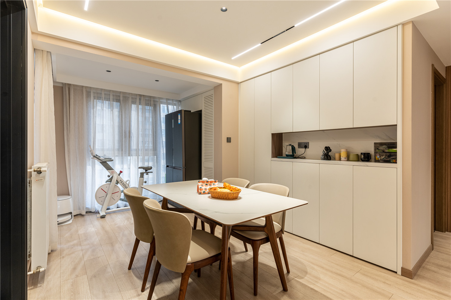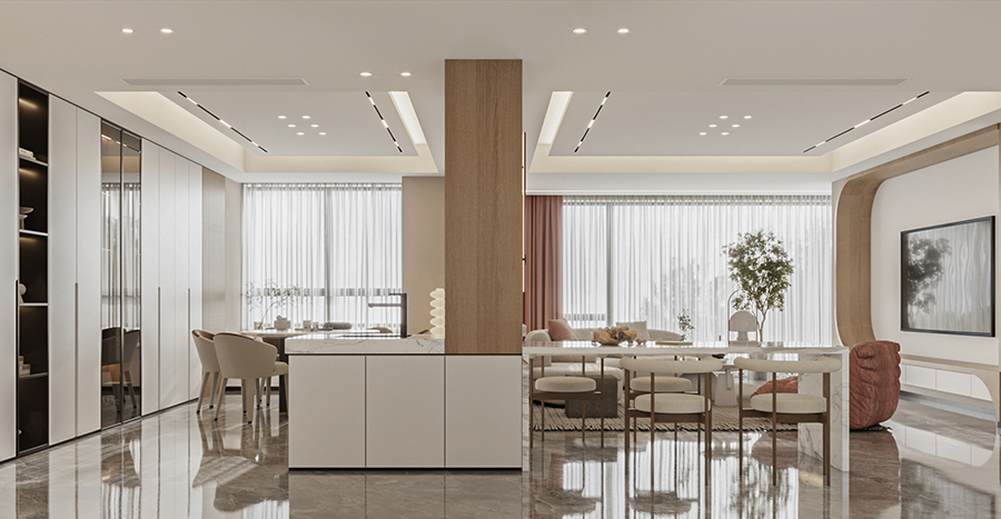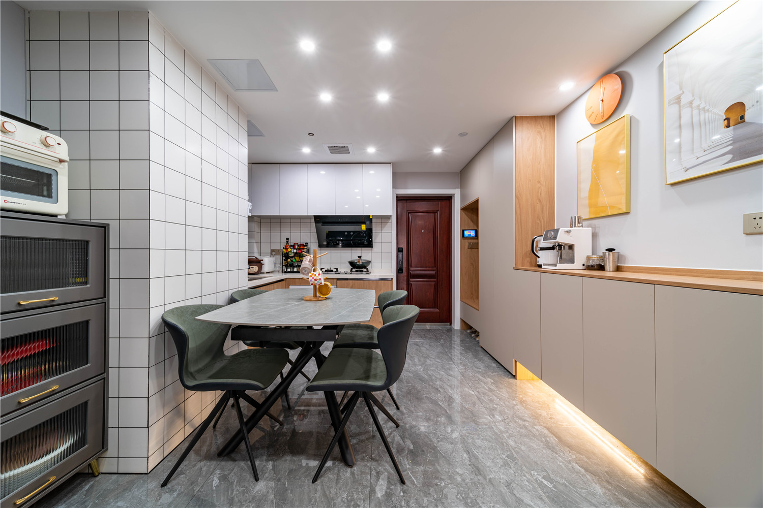灣郡北岸公館四居室現代簡約住宅的面積則是169平方米,房屋戶型整體規整,四居室的分布合理。房屋的客廳、餐廳面積以及方正感都是很好地,房屋的衛生間以及廚房都是具有窗戶的,居住的衛生性也有效的提升。并且四居室的房屋在整體的面積方面夠用,每一個人都可以找到屬于自己的空間。