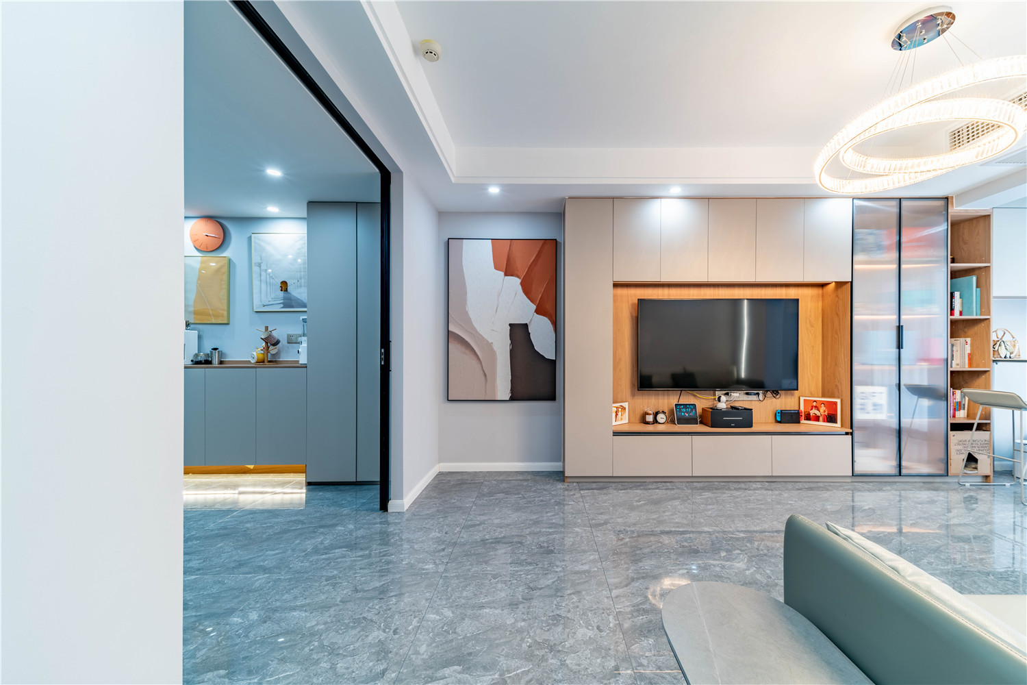 案例簡介:沒有繁瑣及浮夸的表面裝飾處理,有的只是生活中最常運用最為樸素的語言,以及那些精挑細選、用來點綴多彩生活的家具與擺設,簡單的局部弧線點綴讓整個家增添一份設計感,一副清爽且富有質感的構圖便形成了?,F代簡約的風格不僅僅滿足年輕人的需求,對于多子家庭的孩子也會感受到家里的時尚。