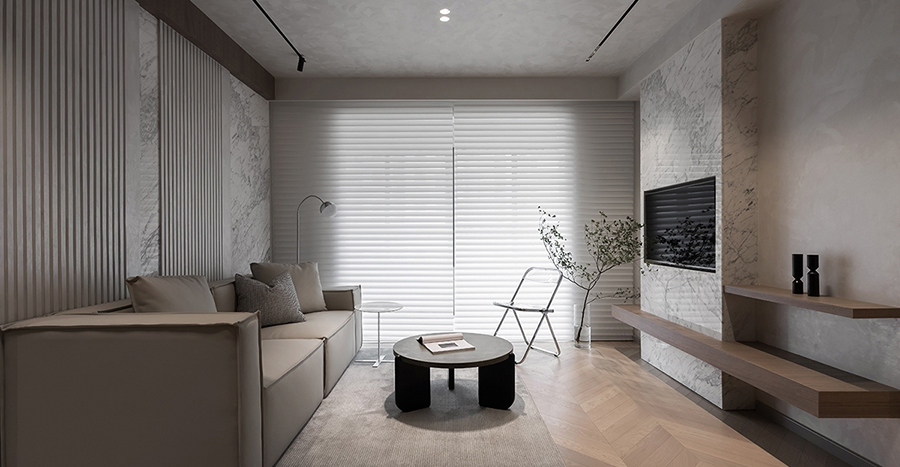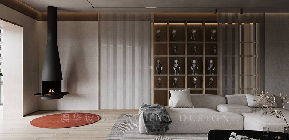 借用隱形門作為電視背景墻,藝術感十足而又有效提升了藝術墻面的利用度。