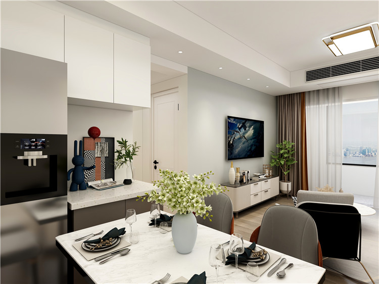 案例簡介:本案例的業主是一對年輕的90后夫妻,家中的常住人口除了夫妻二人之外還有一個剛上小學的孩子,偶爾父母也會過來探望。因此設計師在進行規劃設計的時候,優先考慮業主夫婦與孩子的起居使用需求,同時為業主選擇了簡約時尚風進行裝飾,借助各類現代化的元素打造出一個時尚而又不失品味的高級家居。