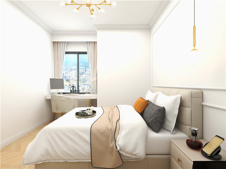 同鑫花園這套159㎡的三居室房屋整個的戶型結構并不規整,但也相對比較常見,整體呈現“L”形,因此需要設計師更加合理的進行空間規劃,避免由于戶型結構不夠規整帶來的壓抑感與局限感。根據業主的需求,設計師將主臥外部空間與主臥區域直接打通,并改造成一個臥室內的衛浴空間,提升主人日常洗漱的便利性。而為了滿足業主的閱讀、辦公需求以及老人偶爾過來探望的居住需求,設計師將一個次臥改造成書房,同時搭配上可收縮式家具,以滿足使用需求。