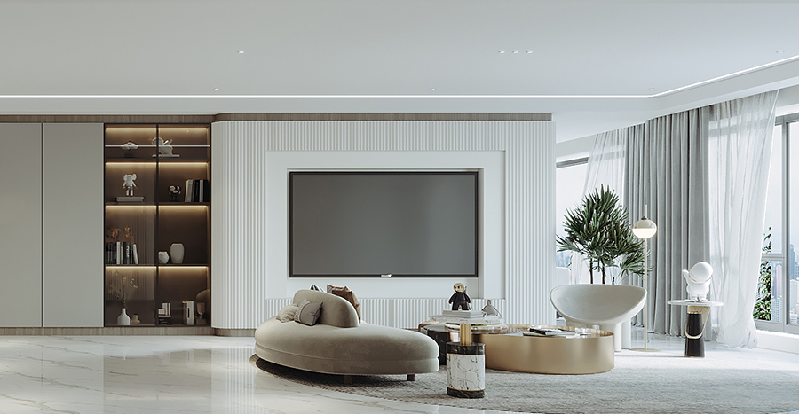 可以區域借助大理石大面打造結構感,并利用高低差滿足日常坐臥需求,現代時尚感濃烈。