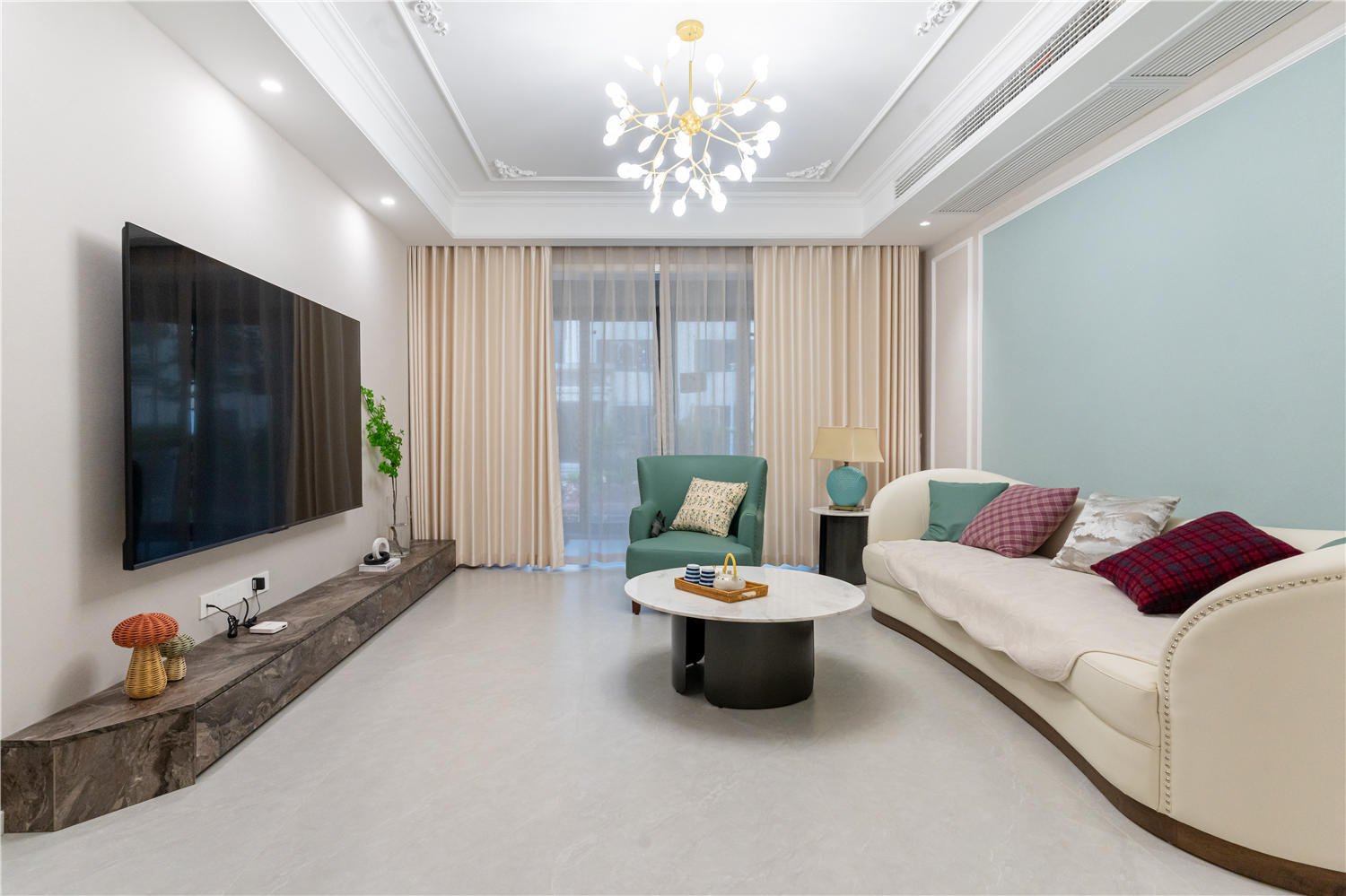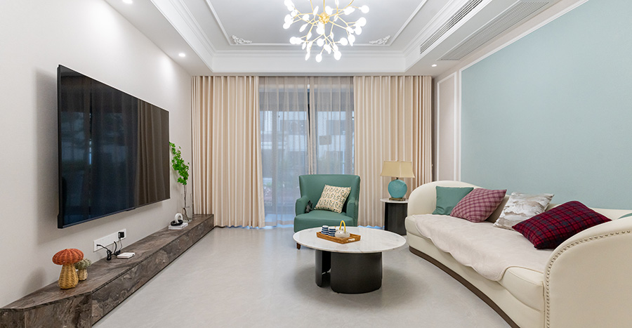 案例簡介:本案例房屋的常住人口除了業主夫婦二人之外還有一雙兒女,因此希望設計師能夠打造出一定的親子互動空間,確保孩子能夠健康快樂的成長。設計師考慮到業主家人的起居使用需求,將空間進行了一定的再規劃,除了主臥之外單獨再分割出兩個迷你的臥室,滿足孩子們的日常曲劇需求。同時為了滿足業主在家辦公需求、會客需求,設計師將其中一個區域改造成書房,另外一個小空間中則設計成茶室。