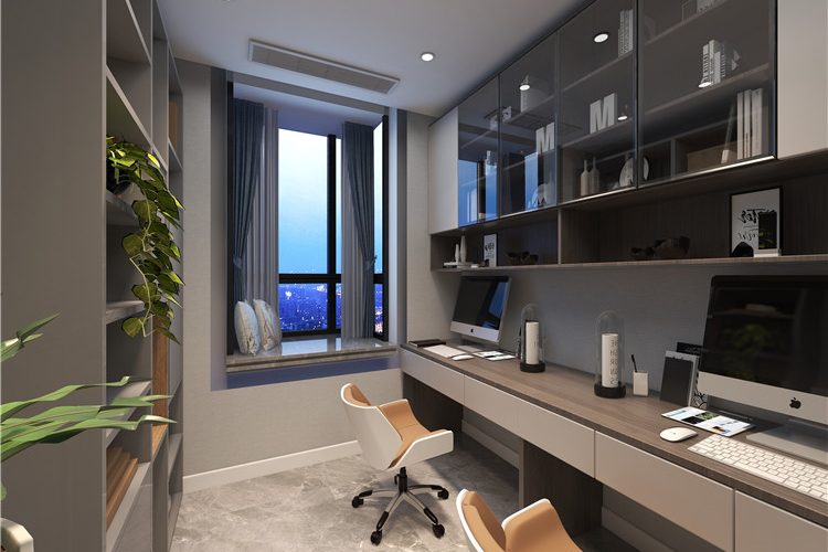 書房空間看上去十分開闊,臨窗設(shè)計(jì)了寫字桌一體柜,家居的色調(diào)看起來非常和諧,墻面嵌入式設(shè)計(jì)了衣柜和收納柜,營造出一種優(yōu)雅的氣息,空間中滿滿的現(xiàn)代風(fēng)。