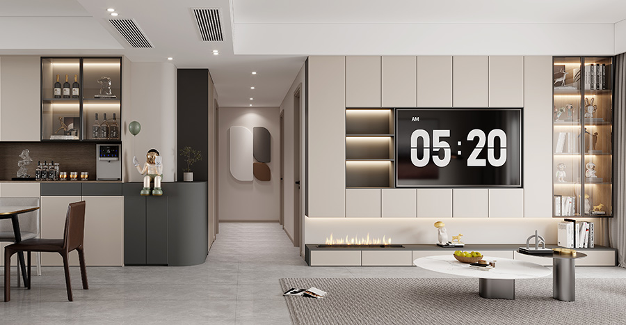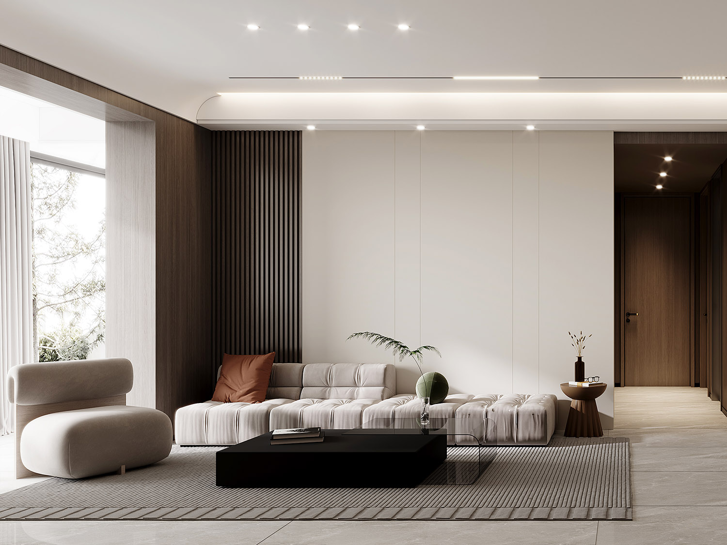 案例介紹:業(yè)主性格內(nèi)斂、穩(wěn)重,頗愛現(xiàn)代風(fēng)格,設(shè)希望新家以素雅的大地色做裝飾,以呈現(xiàn)出簡潔的視覺效果,設(shè)計(jì)師根據(jù)業(yè)主家庭需求,用現(xiàn)代家具裝飾,營造出時(shí)尚前衛(wèi)的氛圍,且兼具靈動(dòng)脫俗的藝術(shù)美感,實(shí)現(xiàn)了業(yè)主希望的更聰明、更智能的人性化居住體驗(yàn)需求。