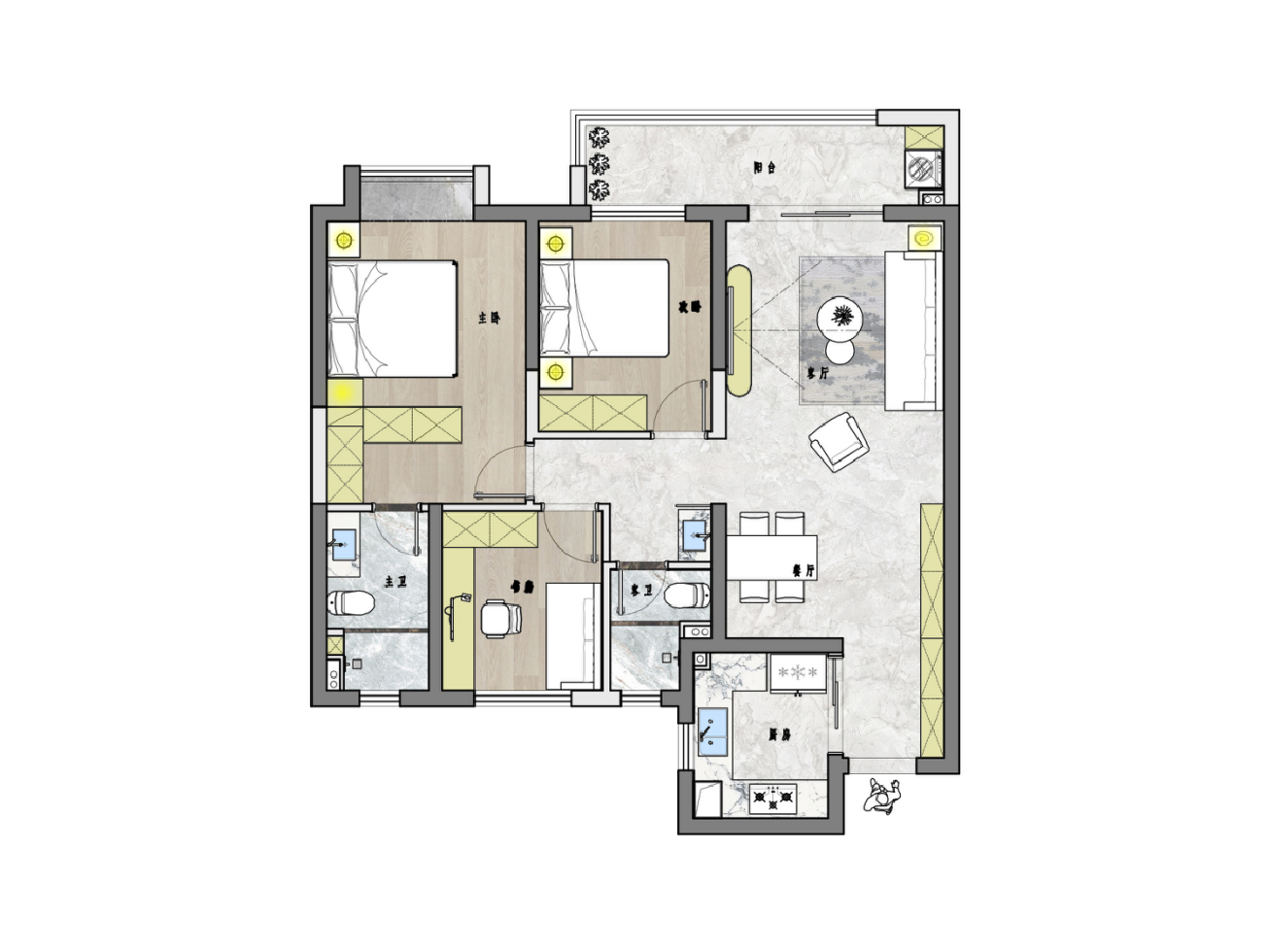 1    通陽臺一分為二,讓南邊次臥功能更加齊全。