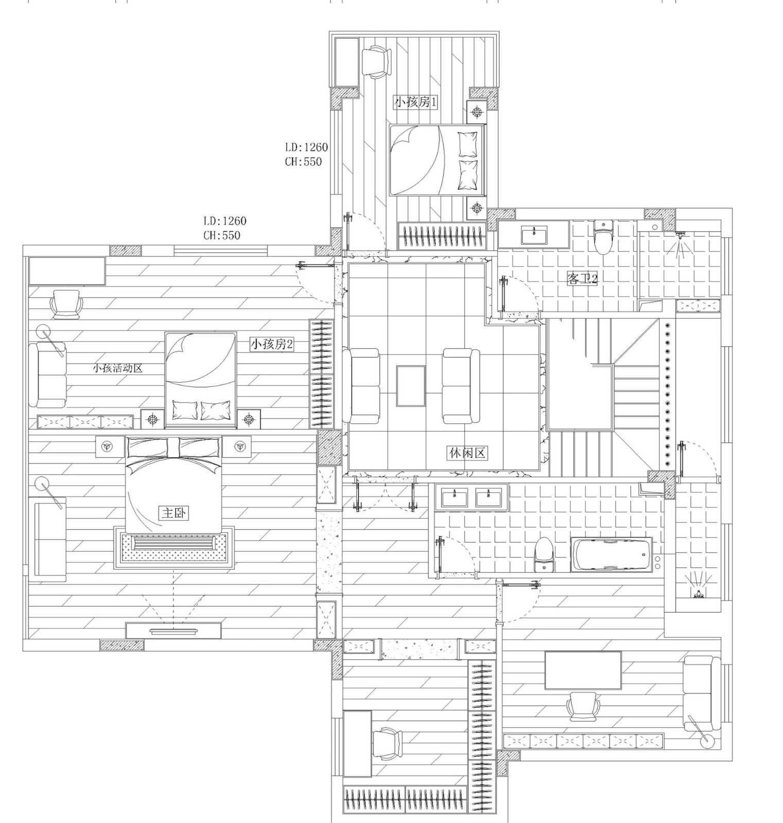 案例簡介:本案例的業主對于生活品質有著較高的要求,且家庭成員較多,因此在購房時特意買了一個帶有露臺的雙層房屋,在滿足基本起居使用需求的前提下追求生活品質。而根據業主的介紹,設計師從人性化的設計角度出發,充分考慮不同家庭成員的使用需求,在美式裝修風格的主基調下雜糅了多種元素,以打造一個個性而又有品質的家居空間。