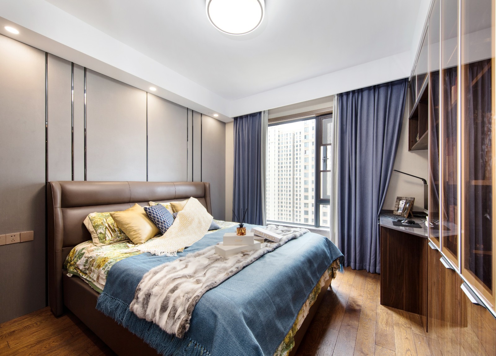 簡單的線條搭配耐看而又高級,窗簾與床具之間的顏色呼應則讓空間更具和諧美。