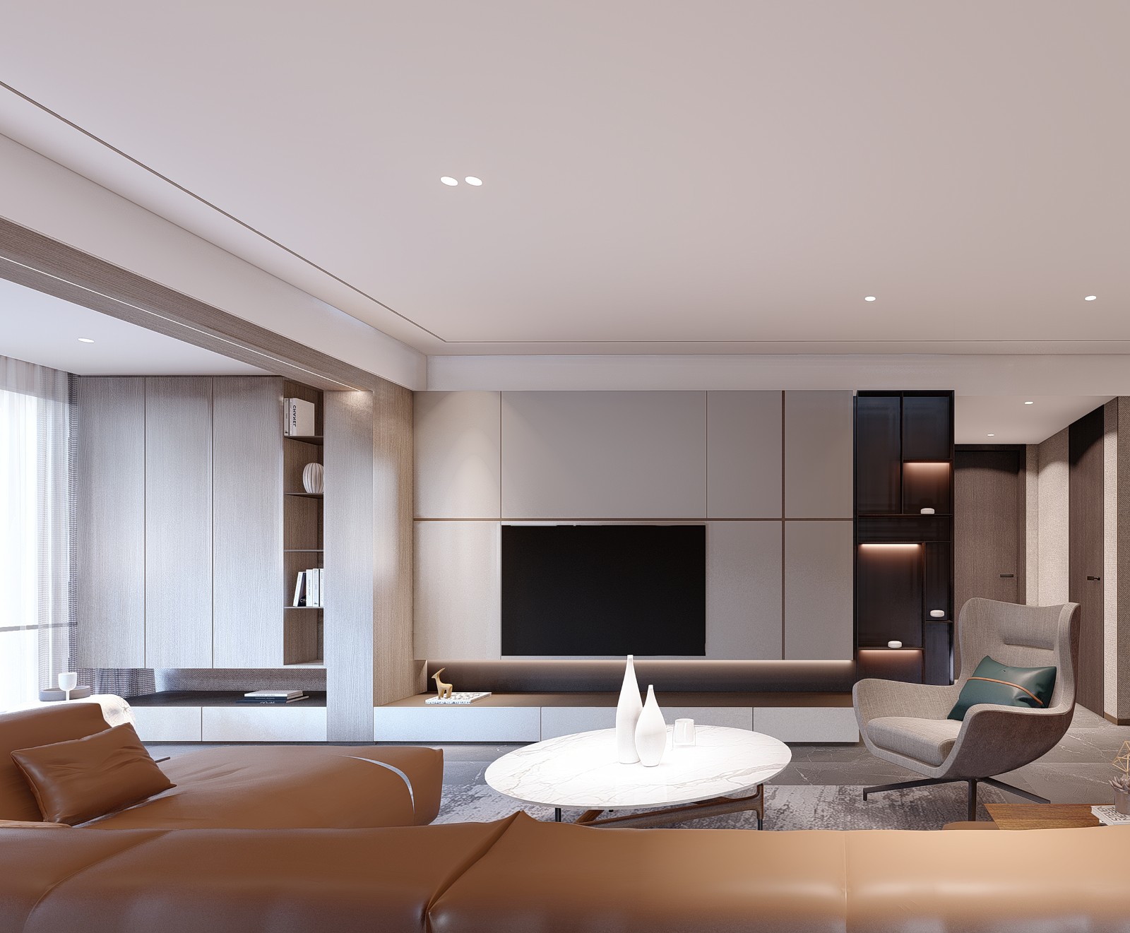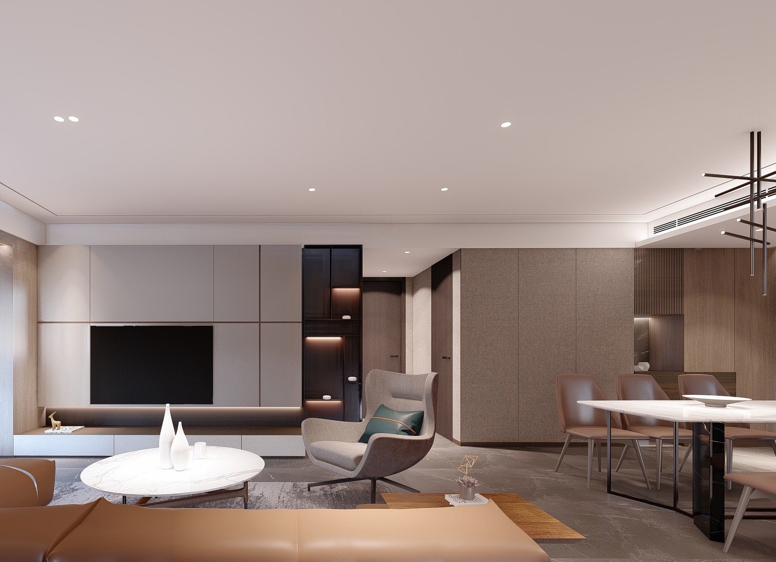 案例簡介:本裝修案例為現代意式極簡風格,設計以業主的品味、審美以及生活習慣為考慮依據,空間整體以素色系色彩為主基調色,把一些復雜的元素都去除,保留必要元素加以少量裝飾,打破繁瑣而又不實用的設計,幫助業主享受生活本質。各類線條的穿插使用,則為空間的結構感、層次感增添了一抹時尚氛圍。