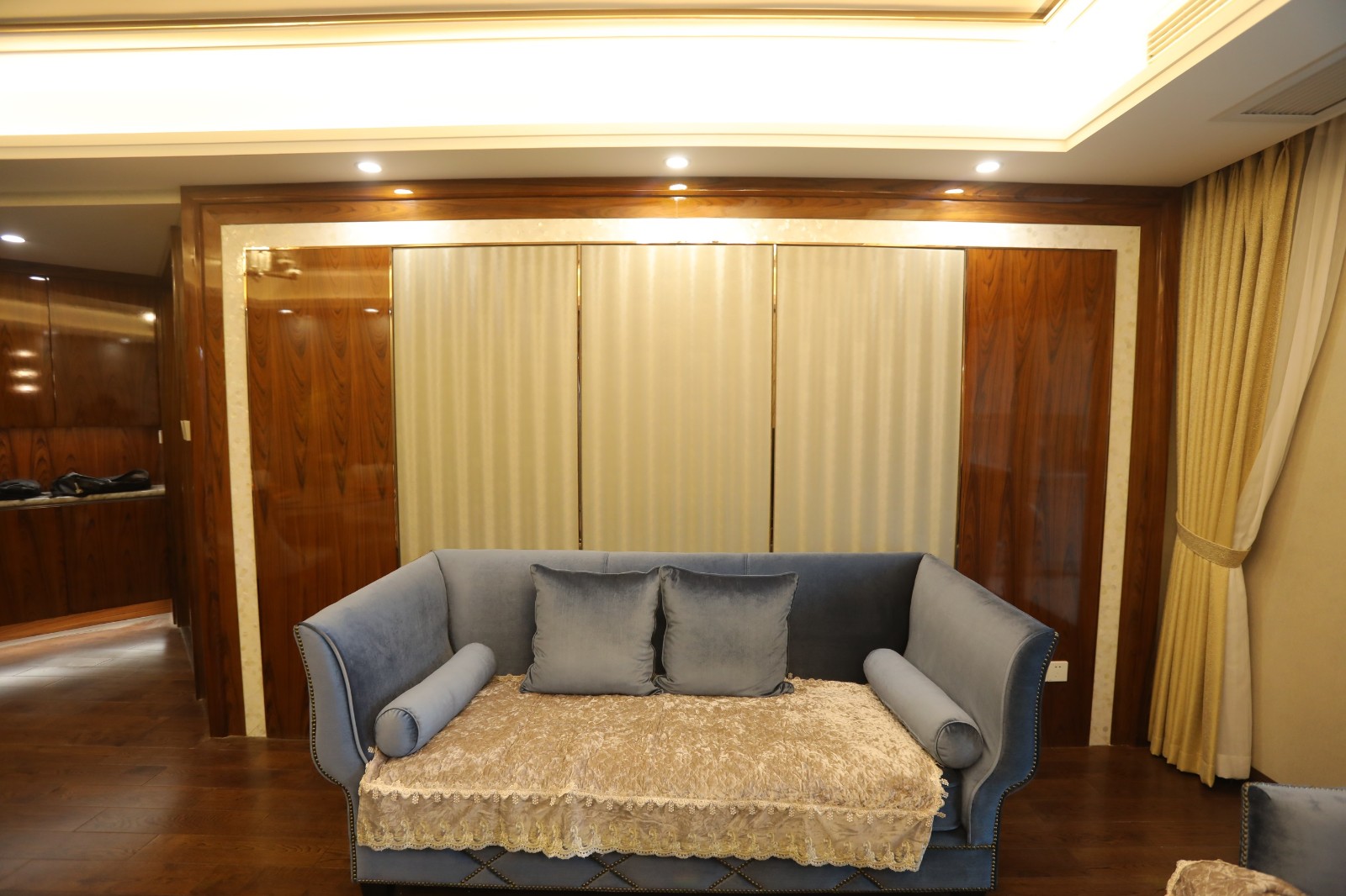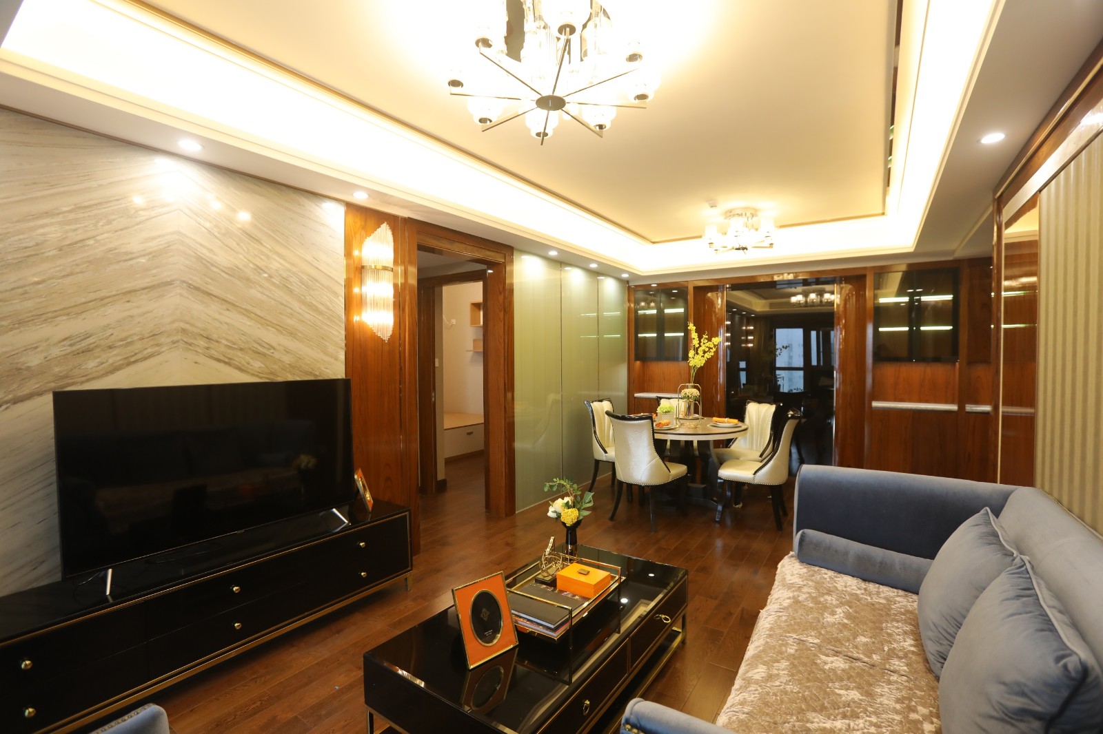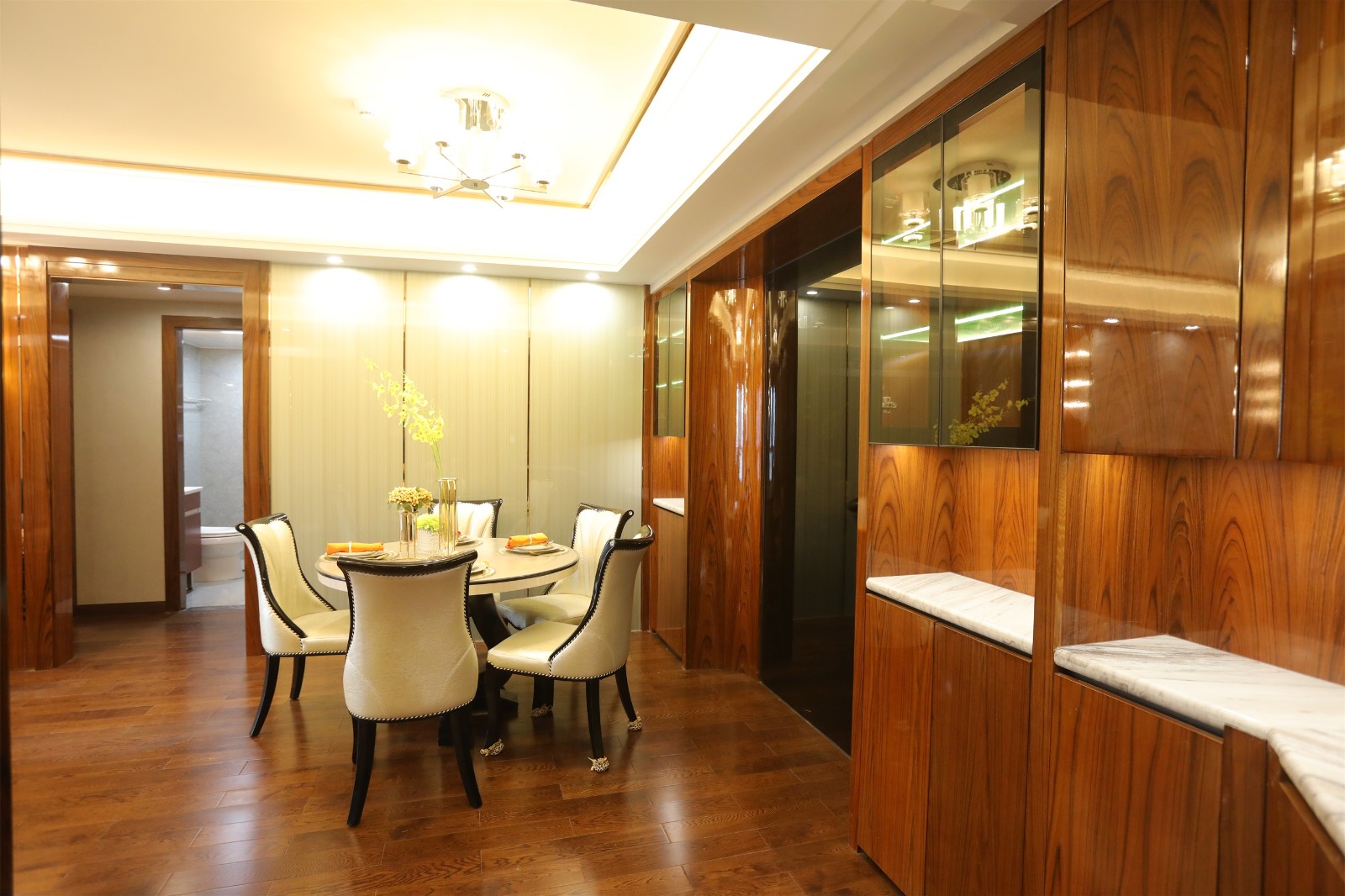 大面積的木質材料搭配上鑲邊處理,簡約中透露著一股精致的古韻美。
