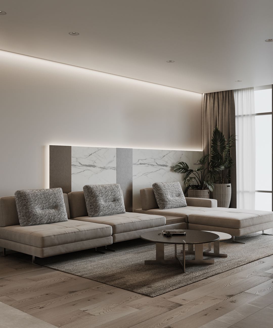 華潤翡翠城這套四居室的占地面積約為138㎡,戶型結(jié)構(gòu)呈現(xiàn)長方形,原有的功能區(qū)域已經(jīng)大致完成,而由于客廳區(qū)域面積過于狹長,因此設(shè)計師在進行規(guī)劃的時候借助軟隔斷分隔出一個就餐區(qū)域,以避免會客區(qū)域顯得過于空蕩。大面積的陽臺則利用大面積的玻璃設(shè)計將室外景觀帶入室內(nèi),再搭配以簡約的家具,滿足業(yè)主們觀賞自然美景的需求。