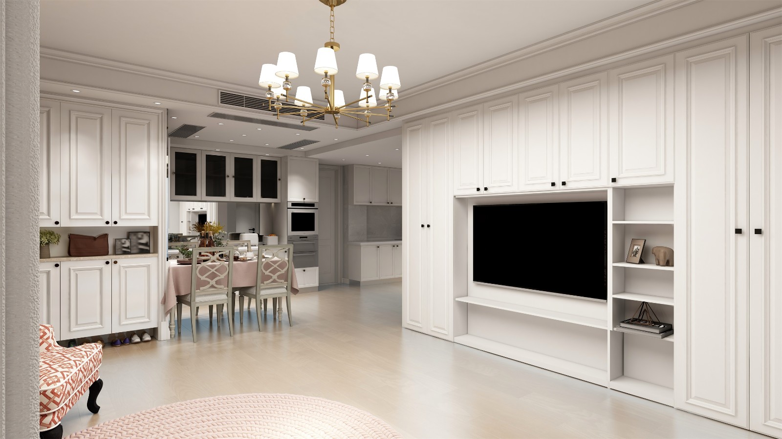 案例簡介:本案例的業主追求一種返璞歸真的清新自然式生活,在喧囂都市打拼久了的他希望能夠擁有一個簡約清新的住宅,他希望設計師能夠放棄各類繁瑣且花里胡哨的裝飾設計,利用最為簡潔的元素與色彩為自己打造出一座夢想的心靈休憩所。在與業主進行深入交流后,設計師為業主選擇了簡美式風作為裝修主基調,通過清新的色彩來營造古樸潔凈的自然美。