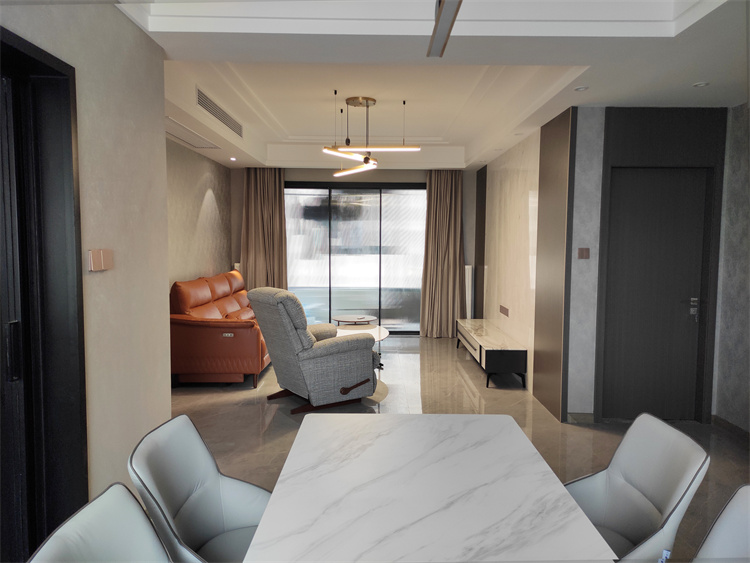 案例簡介:本案例的業(yè)主是一位90后銀行工作職員,對待工作嚴(yán)謹(jǐn)?shù)乃麑τ谏钜餐瑯邮侨绱耍虼嗽谶M(jìn)行家裝過程中他更重視細(xì)節(jié)的強(qiáng)調(diào),希望能夠通過細(xì)節(jié)強(qiáng)調(diào)空間的品質(zhì)感。設(shè)計(jì)師在與業(yè)主進(jìn)行深入溝通后,為業(yè)主選擇了相對比較強(qiáng)調(diào)質(zhì)感的現(xiàn)代簡約風(fēng),同時(shí)借助不同質(zhì)感的材料裝飾空間,強(qiáng)調(diào)細(xì)節(jié)處的高級感。