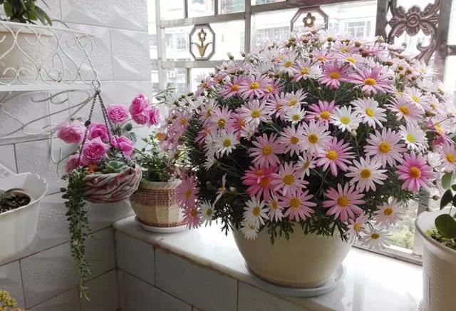 再說說近期比較火爆的瑪格麗特吧!瑪格麗特花的顏色有白色和粉色,就像是一個清純羞澀的少女。這種花好養又爆盆,絕對值得在陽臺種一盆!