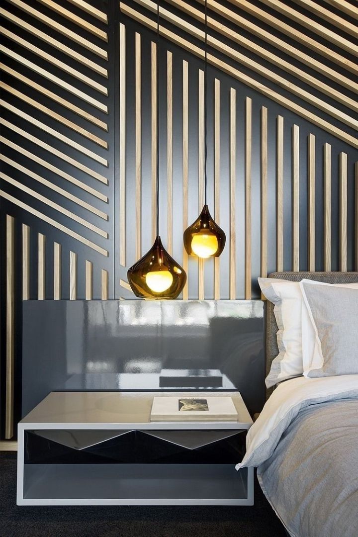 裝飾板的效果非常現代,時尚且簡潔,成本也較高,建議也是留一面墻就可以嘍,但是其他不用裝飾板的墻面顏色最好一致,才能達到簡約而不簡單的輕奢效果。