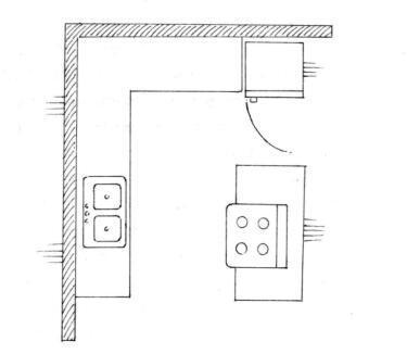簡化備餐臺的設備,只裝一個水槽。因為煤氣灶的四邊需要留一些空間排氣散熱,設在備餐臺不合適。無論是哪種布局,煤氣灶背后最好有一面墻。