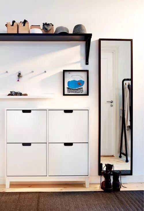 這是家庭中最常見的一種,整面墻全都利用起來作為收納,底部懸空,預留出空間,可以放經常穿的鞋子或拖鞋。