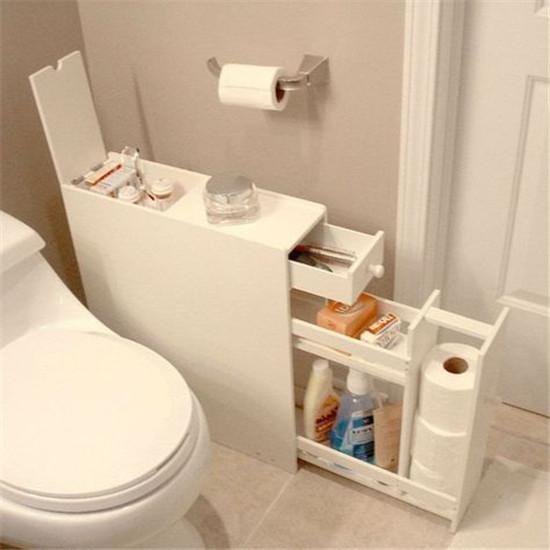 衛生間的縫隙常見于馬桶、洗手臺旁以及門后,這些空間都可以利用起來。